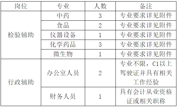 根據工作需要,大同市食品藥品檢驗檢測中心委托大同市勵瑞勞務派遣有限公司招聘檢驗輔助人員10名,行政輔助人員3名,用工形式為勞務派遣,現將有關事項公告如下: