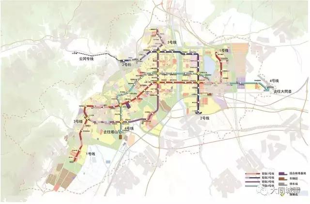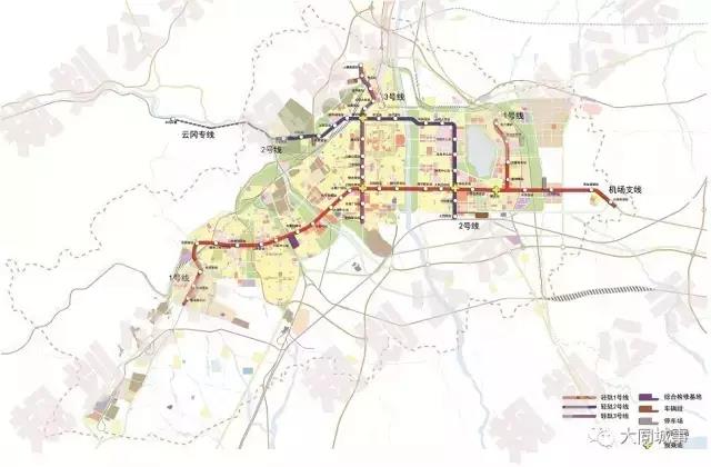 大同市軌道交通1號線一期工程線路走向:南環西路—南環路—南環東路—云岡機場。